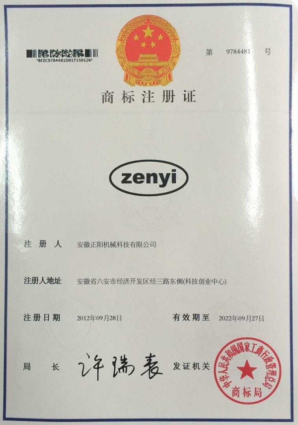zenyi商標(biāo)證書