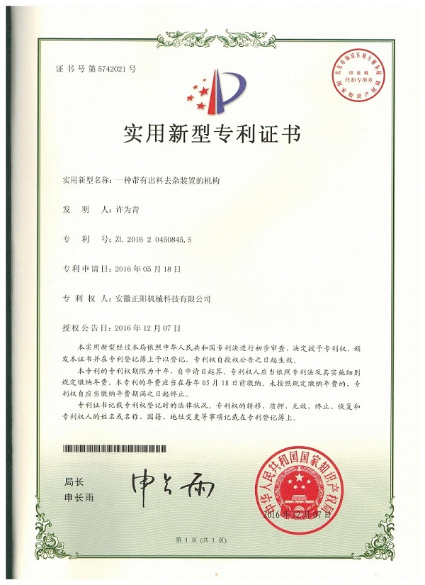 > 正陽機(jī)械 > 榮譽(yù)證書