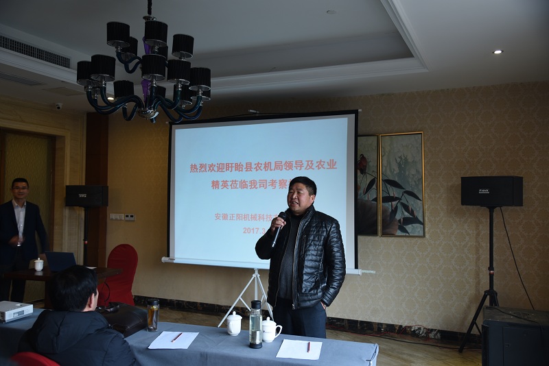 2017年3月6日下午,江蘇盱眙縣農機局領導帶領當?shù)剞r業(yè)精英朋友來到安徽正陽機械科技有限公司考察指導。